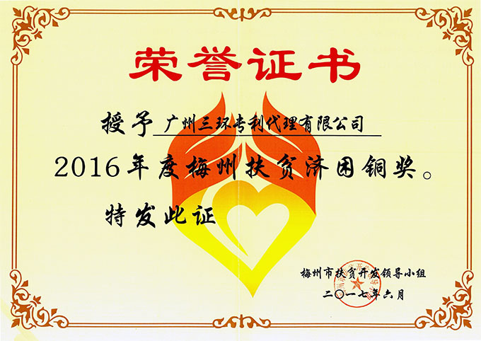 為樹立典型,弘揚(yáng)善舉,進(jìn)一步推動(dòng)梅州市深入開展扶貧濟(jì)困工作,梅州市扶貧濟(jì)困領(lǐng)導(dǎo)小組對(duì)三環(huán)授予了“2016年度梅州扶貧濟(jì)困銅獎(jiǎng)”并贈(zèng)予錦旗,表彰三環(huán)在扶貧濟(jì)困工作中做出的突出貢獻(xiàn)。
